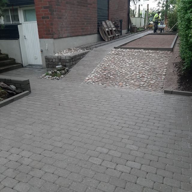Pihakivi ei valitettavasti korjaa huonoa pohjatyötä. Siksi onkin tärkeää, että hyvin suunniteltu piha pohjustetaan riittävällä määrällä oikeaa kiviaineista. Kaivamme tontillesi riittävän pohjan kävelykäytäville, portaille ja kaiteille. Routivat maalajit kuten saven ja hiesun korvaamme hiekalla ja soralla. Näin toimitaan myös turve- ja liejumaatonteilla, joissa vaihdamme huokoisen maa-aineksen kantavaaan soraan. Pohjalle asennamme suodatinkankaan, jonka päälle rakennamme tontille soveltuvin ja valituin maa-aineksin vahvan pohjan. Hyvä pohja varmistaa sen, että tiet ja nousut eivät routimisen vuoksi ryhdy elämään. Hyvin pohjustetut pihakivet kestävät vuosikymmeniä! Lopuksi viemme myös kaikki kaivetut maa-ainekset pois tontiltasi.