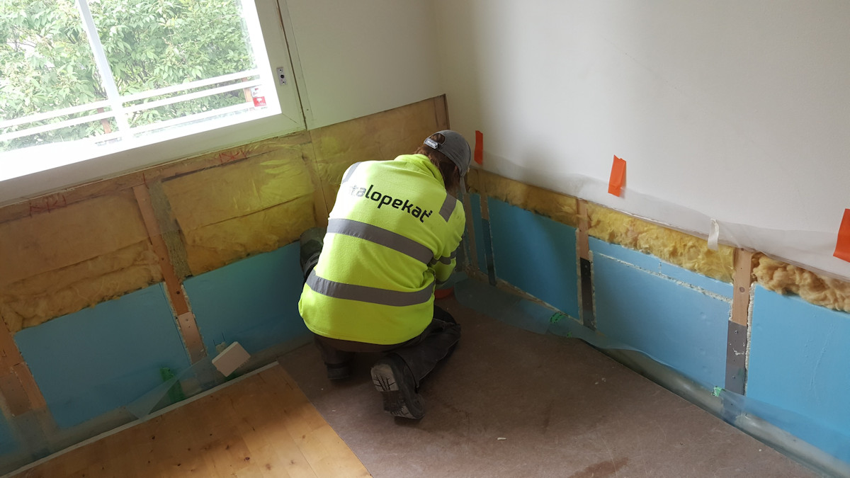 60-luvun omakotitaloissa oli tyypillistä, että seinän puurunkorakenne lähtee alempaa kuin lattiapinta. Siellä oleva alaohjauspuu on saanut kosteutta ja alkanut homehtua. Poikkeuksetta näissä rakenteissa harvoin on tuuletusta juuri lainkaan. Näitä valesokkelin kosteus ja homevaurioita on vaikea havaita silmämääräisesti päällepäin, mutta onneksi helppo korjata jälkikäteen. Teemme vuosittain useita korjauksia ja saamme nopeasti huoneilman raikkaaksi ja valesokkelin korjaus varmistaa myös seinän vedenerityksen jatkossakin.